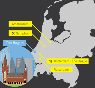 The Hague can easily be reached from anywhere in the world. The city is located in one of the most accessible regions of Europe and has an excellent direct connection with two international airports and several train stations. Moreover, The Hague has environmental friendly public transport that makes it easy to find your way.